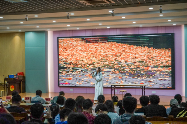数学与统计学院的《梦游天姥吟留别》感慨深沉激烈、朗诵出蔑视权贵,不卑不屈的叛逆精神。教育科学学院的《春江花月夜》倾诉着离情别绪、人生感慨。文学与传媒学院的《楚辞·九歌·山鬼》带我们探寻山鬼千回百折的内心世界。文学与传媒学院的《鹧鸪天·桂花》和商学院的《李清照的一生》用诗词吟诵易安情怀。信息工程学院的《观沧海·短歌行》和教育科学学院的《短歌行》气势磅礴、热情激昂。物理科学与技术学院的《赤壁赋》现月夜泛舟之景、诵诗人达观之情。生命科学与技术学院的《梦回三曲》再现李白、屈原、辛弃疾当年气概。