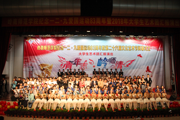 为了让华夏青年铭记一二.九运动,增强爱国主义情怀,燃烧青春斗志,从而肩负起历史使命,怀揣着对未来的梦想,勇闯人生之路,12月8日,以“青年志.岭师情”为主题的岭南师范学院纪念一二.九爱国运动83周年暨第二十六届文化艺术节闭幕式之大学生艺术团汇报演出在音乐厅举行。