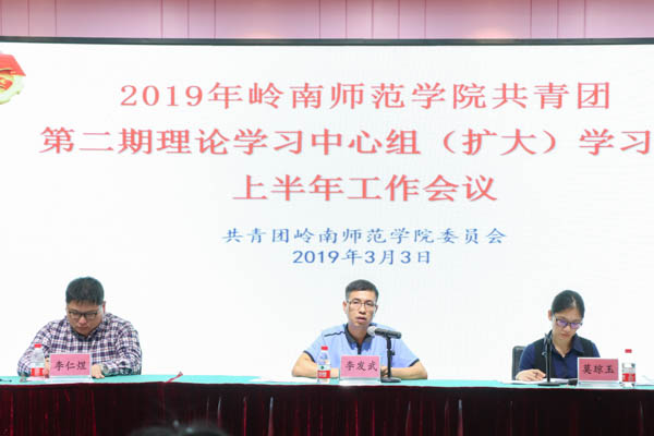 又是一年春来到,岭师团学谋新招。3月3日晚,2019年岭师共青团第二期理论学习中心组(扩大)学习暨上半年工作会议在教三311召开。校团委李发武书记带领校团委全体老师、各二级学院团委负责人出席会议,校级八大组织全体学生干部、各二级学院主要学生干部参加。