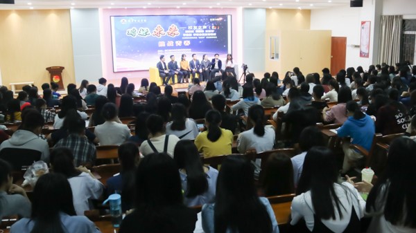 3月16日晚,我校第七届“挑战杯”全国大学生系列科技学术竞赛系列活动之“对标未来——校友之声”访谈会顺利召开。从挑战杯中走出来的五位优秀校友——陈耀江、黄鹏伟、王雨青、许淑渭、李明山将自己与挑战杯的故事娓娓道来。校团委李发武书记、莫琼玉副书记出席访谈会,全校有六百多名听众主动报名参加活动,因场地限制最终共三百多名到场。同时,本次访谈会开启了直播通道,让同学们在网络上也能同步收看。