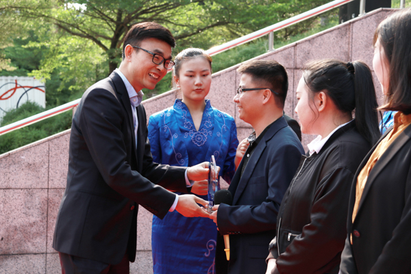 陈耀江、黄鹏伟,李明山,王雨青,许淑渭五位“挑战杯”历届校友回校分享参赛经验和收获,黄达海为他们颁发了“挑战杯”榜样校友纪念奖杯。参赛学生吴咏瑜代表发言,她认为真正的研究是一步一脚印,一步一斟酌。
