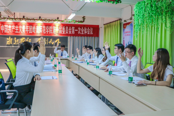 会议表决通过《中国共产主义青年团岭南师范学院第一届委员会常务委员会委员,书记、副书记、学生兼职副书记选举办法》。根据大会选举办法和规定,选举产生第一届委员会常务委员会委员、书记、副书记、学生兼职副书记。