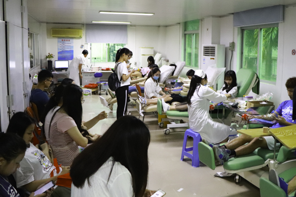 4月27日上午8点,在校团委书记李发武带领下,岭师学子开始前往湛江市中心血站进行无偿献血,一股无偿献血的爱心热潮在血站澎湃而起。