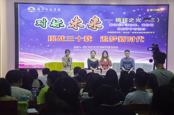 6月16日晚,以“挑战三十载,追梦新时代”为主题的“对标未来——榜样之光(三)”访谈活动在教三311举行。2019“挑战杯”省赛决赛的特等奖获得者:教科院16心本1班黄格敏、黄征珠和生科院16烹饪班蔡智豪为同学们讲述了他们在“挑战杯”竞赛中的所感所悟。