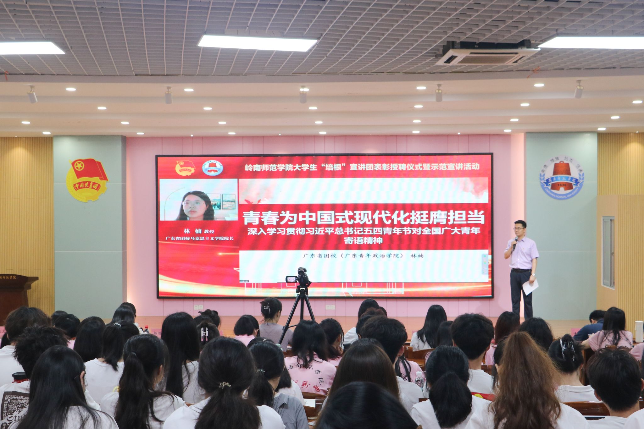百名宣讲员决心自觉讲好党的创新理论,传递党的温暖,讲好青年奋进故事。5月26日,岭南师范学院大学生“培根”宣讲团表彰授聘仪式暨示范宣讲活动在教三311顺利开展。广东省团校马克思主义学院院长林楠教授受邀为大学生“培根”宣讲团授课。