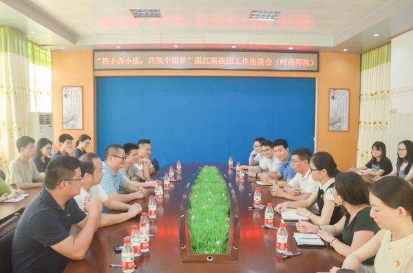 7月16日,为响应广东省教育厅进一步加强我省大学生暑期社会实践活动组织工作的要求,学校共青团诚邀正在湛江地区指导社会实践的兄弟院校领导老师参加“携手奔小康,共筑中国梦”湛江实践团工作座谈会。出席座谈会的有校团委书记李发武、副书记莫琼玉、广州大学华软软件学院团委书记罗达、广东轻工业学院外语院党委副书记闫卫峰等 。