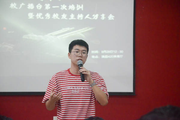 为提升学校播音主持专业与能力,为2019级新生主持播音大赛复赛选手提供专业知识培训,9月29日,校广播台邀请优秀校友陈威到鸿园420,作播音主持经验分享。参加培训会的有校广播台学生干部以及2019级新生主持播音大赛复赛选手。