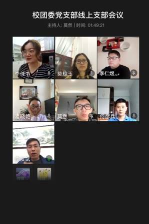 根据校党委组织部《关于基层党组织在疫情期间防控期间开展组织生活的通知》的要求,校团委党支部于3月19日召开线上视频支部会议。全体党员参加本次会议,就校团委党支部疫情期间的工作进行讨论和部署。此次会议采用线上视频会议的形式,引领党支部活动向网络空间拓展,展现了党支部成员锐意进取的风貌。