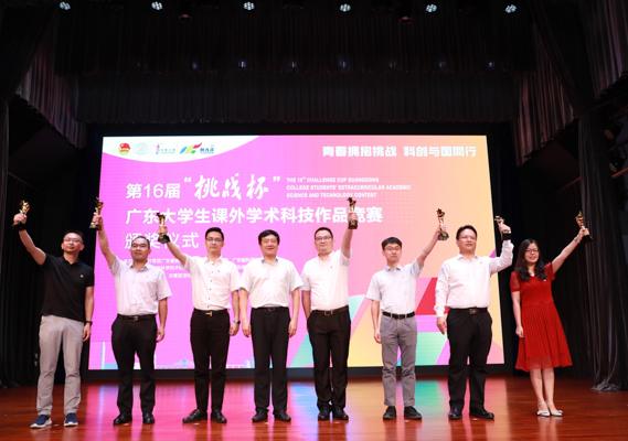 “岭南师范学院!我们捧杯了!”看到大屏幕中,学校团委书记林仲彦高高举起“挑战杯”省赛优胜杯,坐在未来空间站收看颁奖仪式的全体师生热烈欢呼起来。7月18日下午,第十六届“挑战杯”省赛决赛颁奖仪式在深圳大学举行。经过激烈角逐,我校以全省本科高校总分排名第11位荣获本届“挑战杯”优胜杯,选送的24件作品获得特等奖3项、一等奖2项、二等奖5项、三等奖14项,首次实现送审作品全部获奖。这也是我校自2005年以来第八次获得省赛优胜杯。