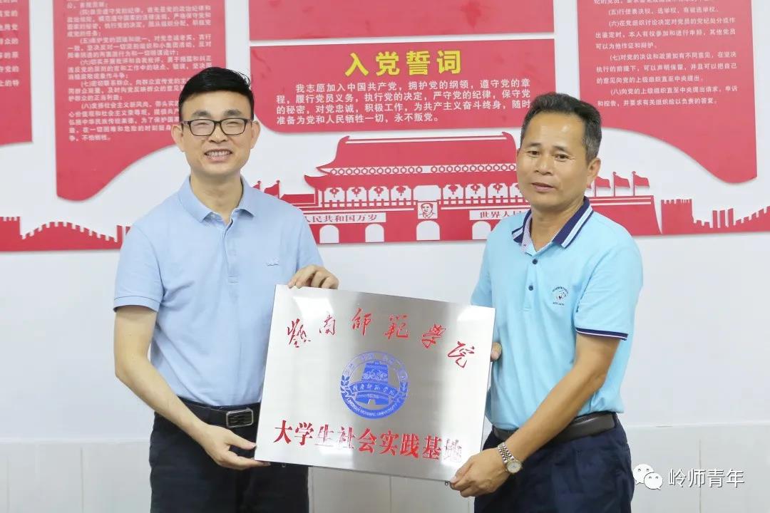 走访结束后,紧接着召开基础教育高质量发展调研座谈会。为了常态化、精准化开展社会实践,岭南师范学院和东里镇初级中学决定共建大学生社会实践基地。在与会人员的共同见证下,黄达海将“岭南师范学院大学生社会实践基地”牌匾授予东里镇初级中学,并向学校捐赠一批教学物资。