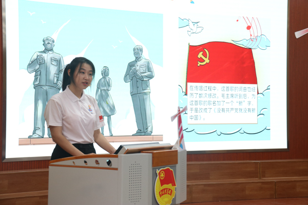 “我们是共产主义接班人,继承革命先辈的光荣传统。”在首场宣讲中,宣讲队员涂欣雨向120名少先队员代表介绍了中国少年先锋队光荣队史,她深入讲述了中国共产党在不同的历史时期坚强领导和悉心关怀中国少年先锋队,推动中国少年先锋队事业日益壮大并取得青少年拥护和爱戴的伟大成就。宣讲现场气氛热烈,少先队员们专心学习党史、队史知识,踊跃参与互动问答,展现了新时代少先队员学习了解党史、队史浓厚的热情。在全场齐唱《没有共产党就没有新中国》和《我们是共产主义接班人》的嘹亮歌声中,第一站宣讲活动圆满结束。