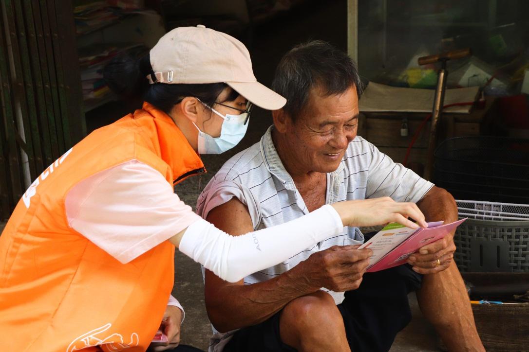 志愿者用粤语向村民讲解反家暴(黄杰志 摄)