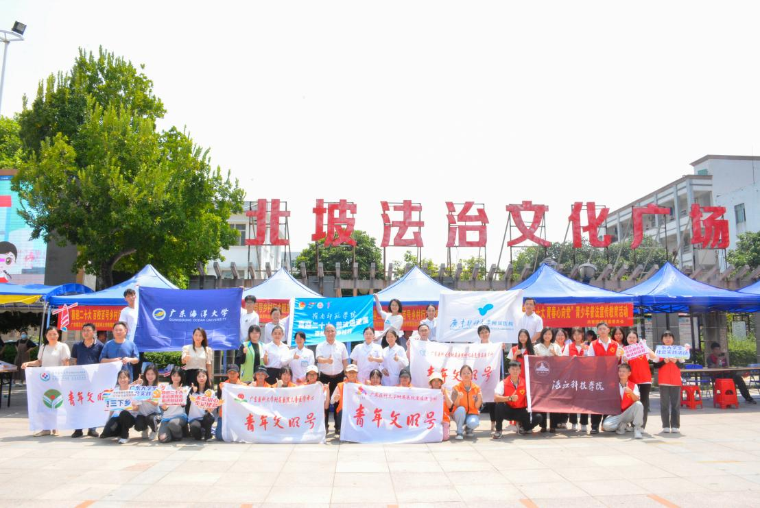 9月14日,遂溪县北坡镇法治文化广场热闹非凡,一场“喜迎二十大,助推乡村振兴”暨“百校百号乡村行”专项行动正在开展。来自岭南师范学院的大学生们与广东医科大学附属医院团委、其他驻湛高校和医疗单位团委、政府及企事业单位的青年一起,为当地群众开展义诊、科普宣教、普法宣传等活动。
