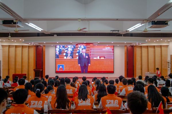 10月16日上午10点,中国共产党第二十次全国代表大会在北京人民大会堂隆重召开,中共中央总书记、国家主席、中央军委主席习近平代表十九届中央委员会作报告。岭南师范学院400多名青年师生代表在教三311和211教室集中观看大会,各二级学院团委、学生会以多种形式组织团员青年在会议室、教室、宿舍等进行收听收看。师生们以饱满的热情和热烈的期盼之情,认真收看大会开幕盛况,聆听大会报告,畅谈学习体会,迅速掀起学习党的二十大精神的热潮。