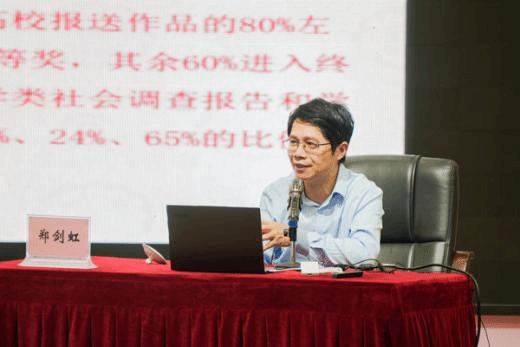 郑剑虹教授从参加“挑战杯”竞赛的意义、选题、研究方法和作品提升等四个方面为同学们“传经送宝”。他鼓励学生们积极参加“挑战杯”竞赛,在力争荣誉的过程中,巩固、拓展与应用所学知识和技能,同时培养勤奋、坚持、自信等优秀品质。