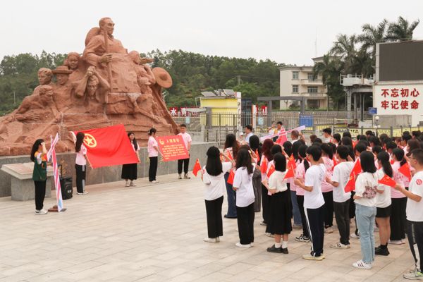 “我们是五月的花海……”“我志愿加入中国共产主义青年团……”在雷州青年运河群英雕像前,岭师青年学子饱含深情地唱着团歌;在鲜艳的团旗前,全体师生整齐列队,紧握右拳,重温入团誓词,铿锵有力的宣誓声响彻云霄,表达了青年团员坚定的政治信念和矢志不渝,不懈奋斗的坚强决心。