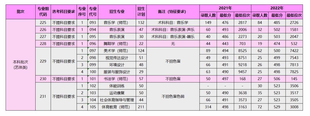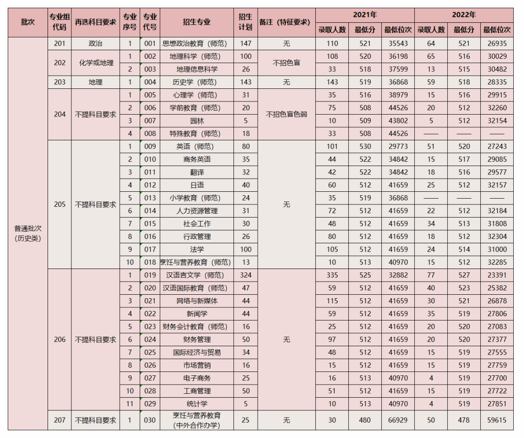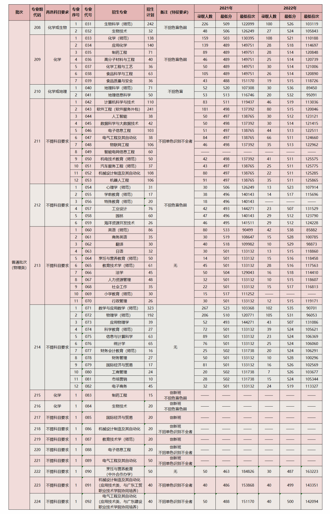 注: 1.“——”为该专业当年未招生,无录取数据;