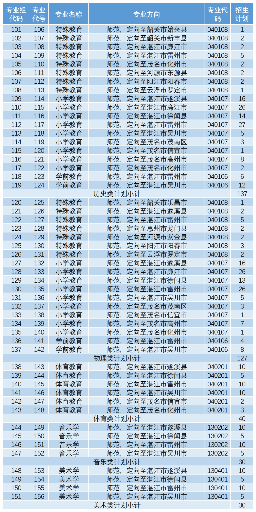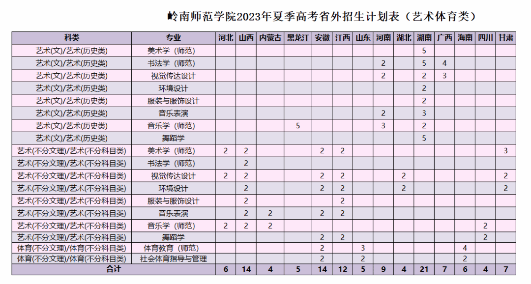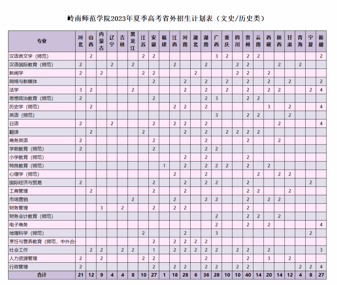 2023年岭南师范学院面向广东省外30个省(区、市)招收普通高考生,省外招生计划数共计1041人。