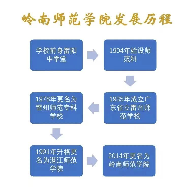 岭南师范学院(原湛江师范学院)是一所具有百年师范教育历史的广东省属普通本科院校,坐落在中国大陆最南端的美丽港城湛江市。学校前身雷阳中学堂,1904年始设师范科,1935年成立广东省立雷州师范学校,1978年更名为雷州师范专科学校,1991年升格更名为湛江师范学院,2014年更名为岭南师范学院。