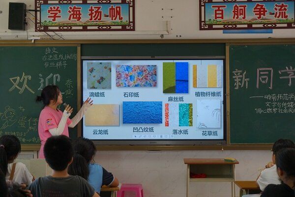 7月10日下午,“同心燃梦”支教组成员曾雨曼和袁晓芹分别为五年级学生讲授语文拓展课和古法造纸特色课程。