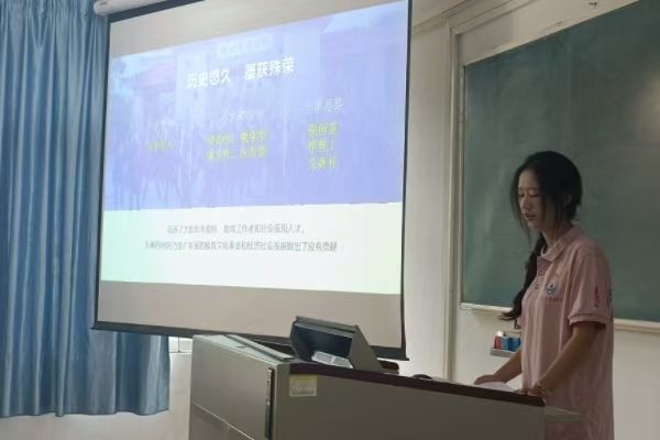校史是一所大学伴随着国家、社会、行业成长的历史文化记忆,有助于高校师生校友形成激发情感、聚合情感的纽带,培育身份认同、文化认同的重要载体。10月26日下午,化学院“培根”宣讲团成员胡举兰在第三教学楼202室开展校史校情宣讲活动。化学院23制药团支部全体成员参加此次活动。活动旨为进一步了解岭南师范学院的校史和文化底蕴,传承和弘扬岭师精神,加强岭师学子感情共鸣和文化认同。