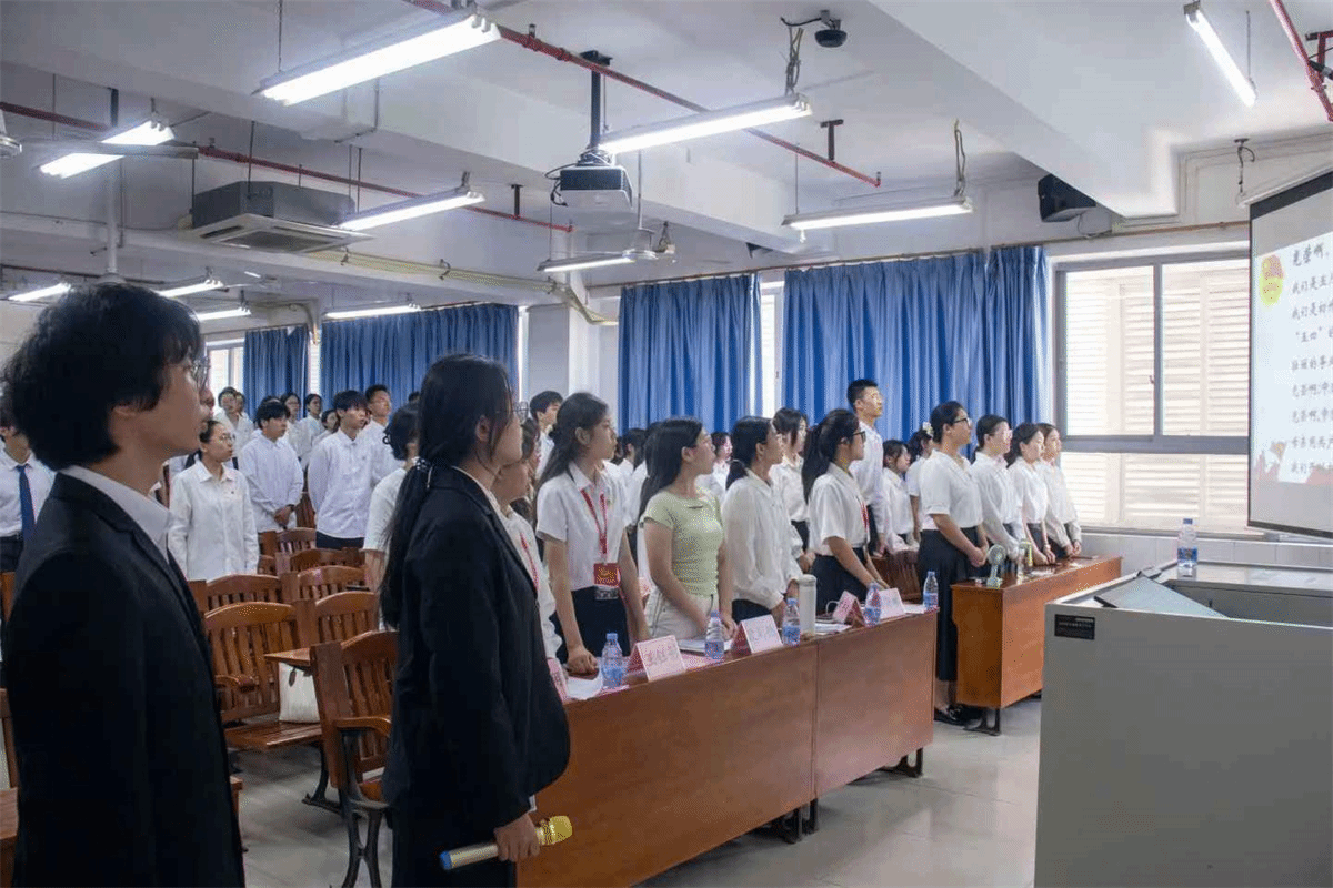 会议肇始,严谨的考勤环节有序开展,主持人认真核对每一位参会人员的信息。紧接着,“我们是五月的花海,用青春拥抱时代......”激昂的团歌在会场响起,全体同学精神抖擞、热情洋溢、歌声嘹亮且整齐划一。