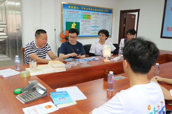 “古建奇探”突击队和村委进行交流(廖鹏壹 摄)