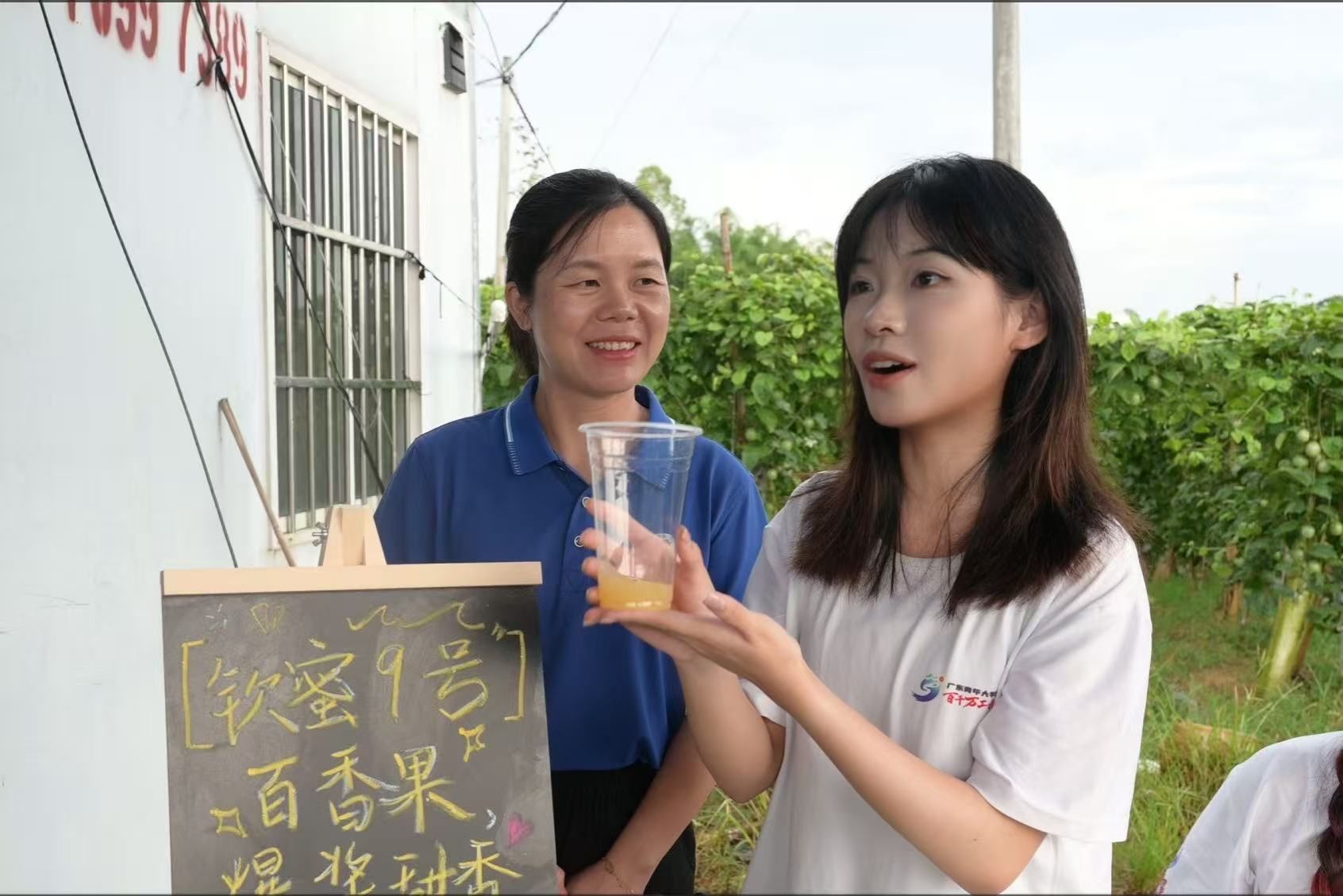 队员邀请老师品尝百香果特饮(邓瑛华 摄)