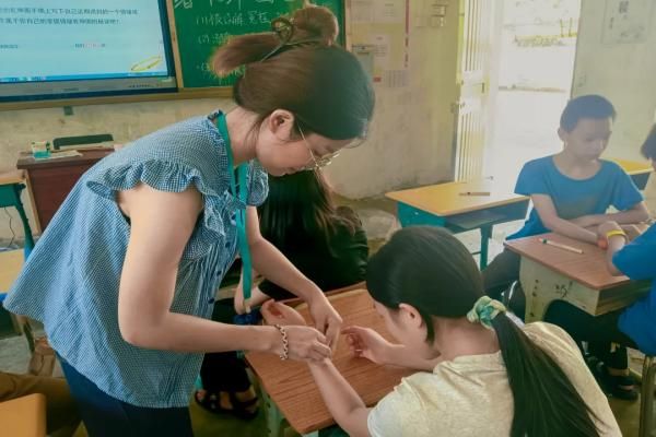 陈芷琳教学生制作乾坤圈(李金泳 摄)