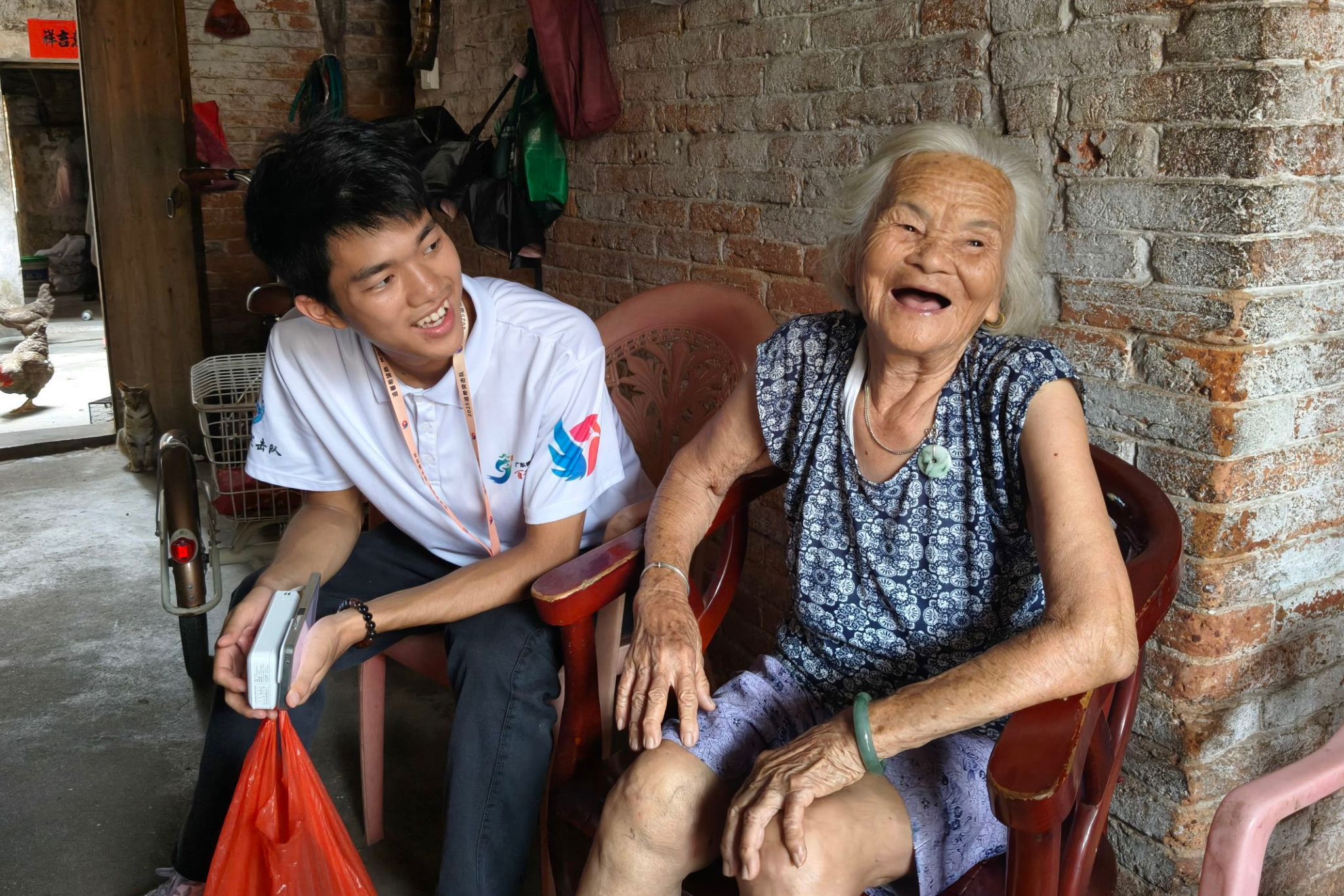 队员吴时铗在与老奶奶聊天 (张颖希 摄)