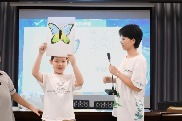 7月11日,湛江市赤坎区中华街道新江社区活动中心内洋溢着孩子们的惊叹与欢笑。岭南师范学院美术与设计学院“百千万工程”突击队“红帆”突击队再次走进社区,为孩子们带来了充满传统文化韵味与现代艺术趣味的特色课程,上午队员们带领社区儿童体验非遗拓印技艺雕刻“龙”纹,下午则教导他们用油画棒绘制五彩斑斓的蝴蝶。