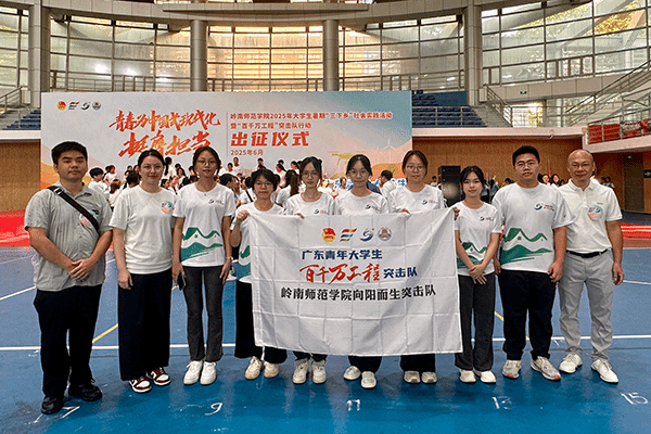 2025年暑期,岭南师范学院外国语学院“向阳而生”突击队再启征程,参加2025年大学生暑期“三下乡”社会实践活动暨“百千万工程”突击行动出征仪式。锐意进取,奋发向上,勇担时代重任,以青春之我触摸老街脉动,以传承之志探寻赤坎风华。