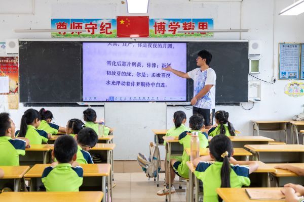 7月16日上午,坡头区坡头镇第二中学五年级的同学参与了一场丰富有趣的特色课程——朗诵。课程由琢光突击队队员吴皓远设计,旨在通过朗诵经典诗文、文学作品,提高学生的语言表达能力,增加词汇积累,提升自信心。