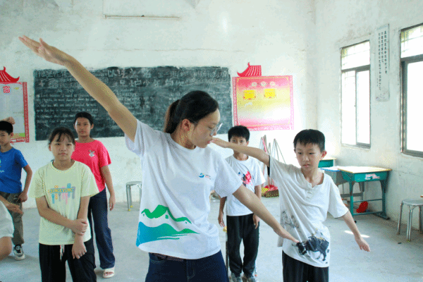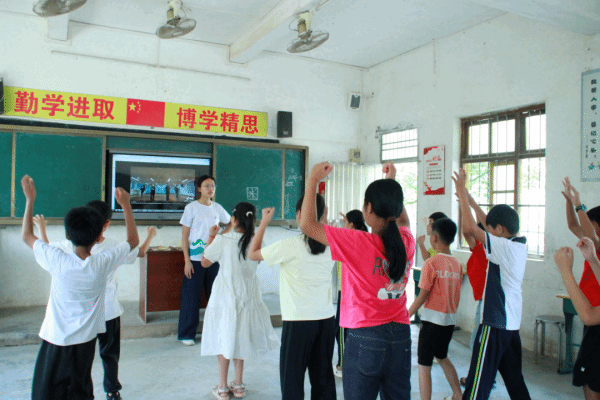 2025年7月14日,在湖塘小学的教室里,一场别开生面的舞蹈课正在进行。启航·梦之队的支教老师吴桐以流行歌曲《我的未来式》为素材,带领孩子们在律动中感受艺术魅力。没有专业舞蹈教室的镜墙与把杆,水泥地面就是最质朴的舞台。