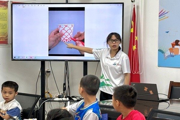 课堂上,支教组的小老师们通过图文讲解和视频展示,深入浅出地向孩子们介绍湛江遂溪游鱼灯的历史渊源与文化内涵。游鱼灯作为非物质文化遗产,承载海上平安和渔业丰收的美好愿景,其精巧的制作工艺与生动的造型艺术展现了民间智慧。孩子们认真倾听,踊跃提问,课堂氛围热烈。