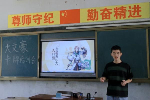 覃业成讲解大文豪卡牌(庄丰帆 摄)
