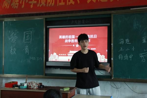 队员梁家铭作为红色教育课的“主讲人”,首先带领孩子们回溯苦难开端,触摸历史伤痛。从九一八事变的炮火,到南京大屠杀的悲惨,一个个真实故事,辅以简单比喻和图片,让孩子们直观感受山河破碎的痛,激发孩子们对历史苦难最初的共情,明白和平来之不易。