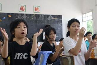 队员在引导学生上课(“贝多果”突击队 摄)