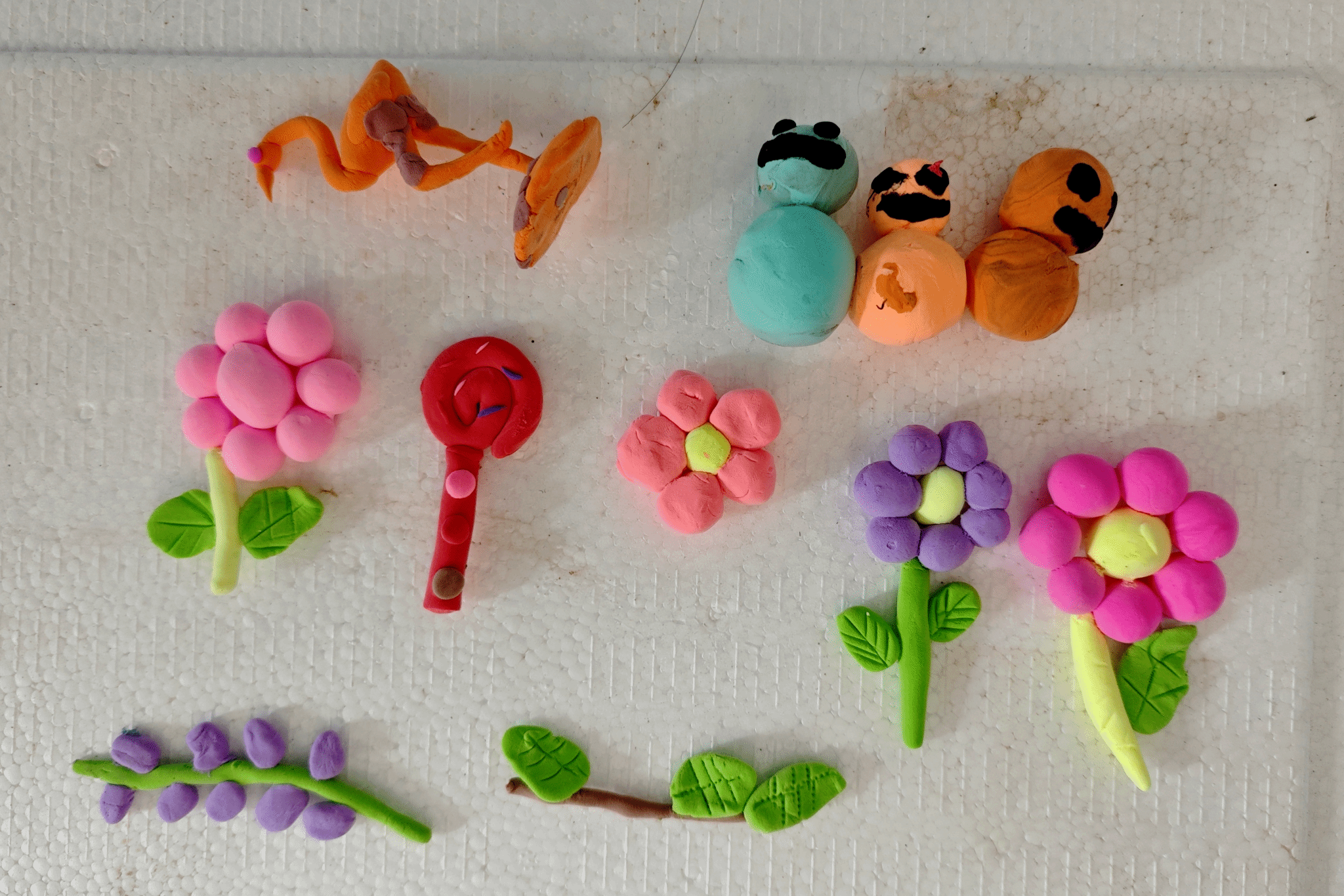 课程尾声,当所有作品陈列于桌面时,一场属于孩子的“黏土艺术展”惊艳亮相。憨态可掬的小动物仿佛要跳出掌心,五彩斑斓的花朵在指尖悄然绽放……孩子们争先恐后地向同伴展示自己的作品,自豪的神情里满是对艺术创作的成就感。每一件作品都是孩子们智慧与努力的结晶,展现了他们无限的创造力。这些作品不仅装点了课堂,更成为了孩子们成长路上的珍贵印记。