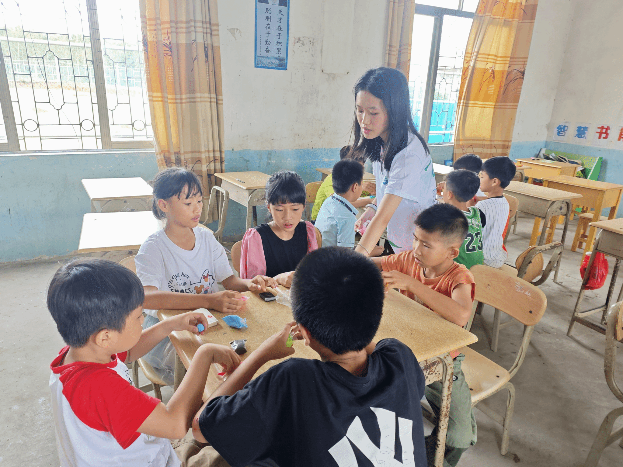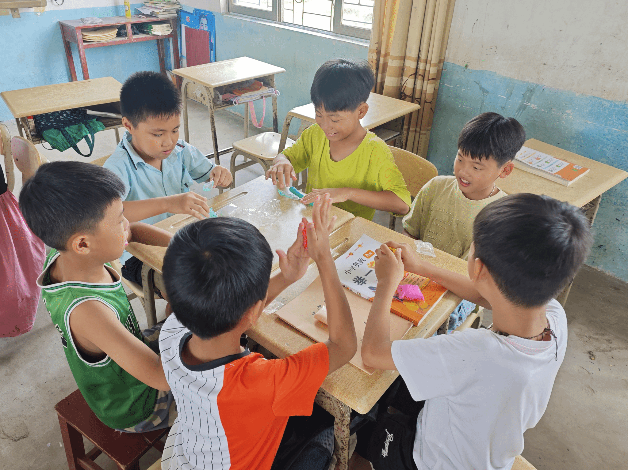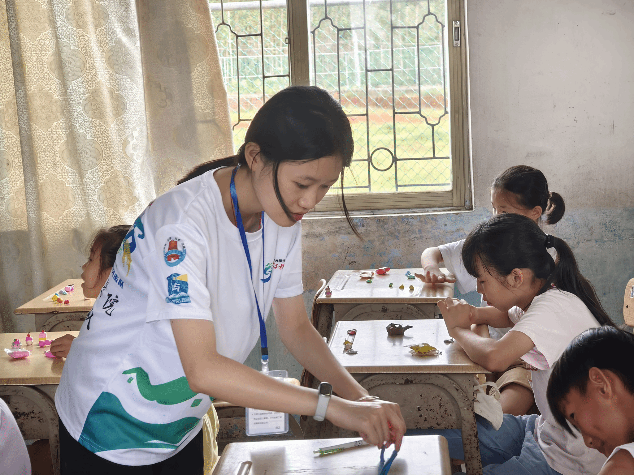 教学组组员分发黏土(屿望突击队宣传组 摄)