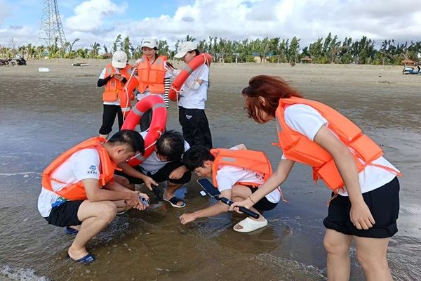 在南端暖滩上也留在调研组组员的身影。这片以温暖沙滩和独特海岸线闻名的区域,既是自然景观的瑰宝,也是乡村旅游的重要载体。队员们沿滩涂徒步,拍摄地貌特征照片,采访当地渔民关于海洋资源利用与生态保护的实践经验,还关注暖滩周边旅游开发与环境保护的平衡问题。