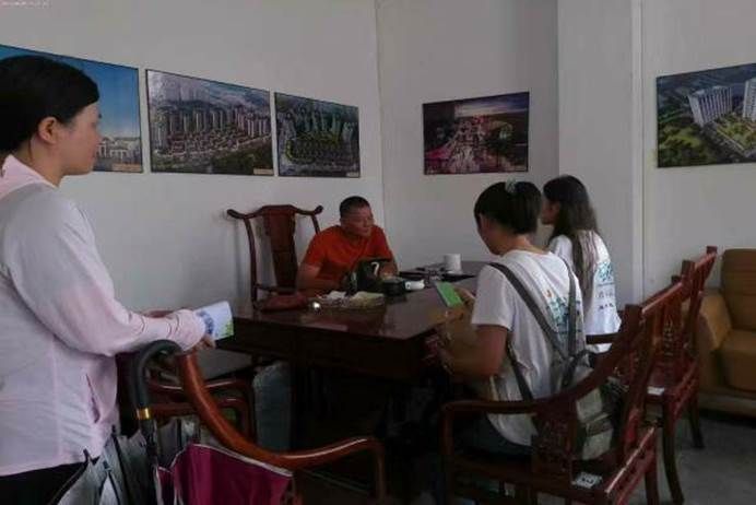 队员们在与村委会工作人员交流(马志豪 摄)