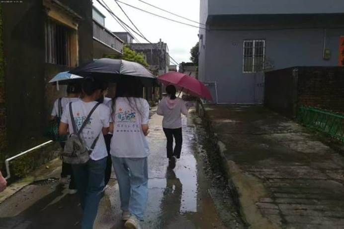 阴雨绵绵,“星澜蘅光”突击队的队员们身着统一队服,手持雨伞,穿梭在三洲村的小巷中。他们深入乡村,脚步丈量着每一寸土地,以实际行动探寻红色印记,为后续红色文化宣讲积累素材、对接村民。
