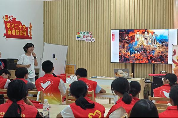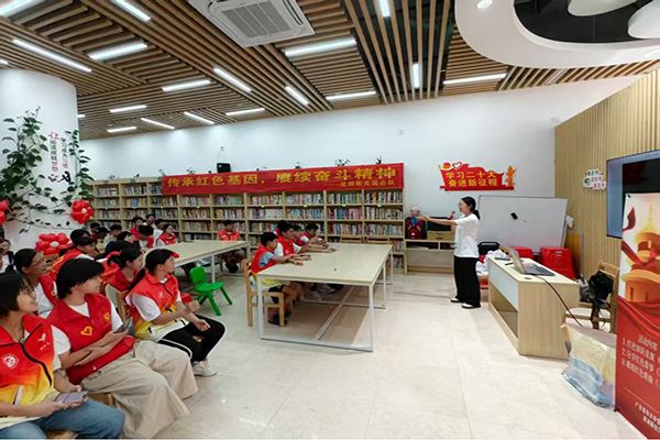 8月12日,岭南师范学院“星澜蘅光”突击队一行来到江城区图书馆漠阳书屋,通过生动讲述红色故事、解读红色精神内涵等方式,为志愿者们带来了一场深刻的红色文化洗礼。