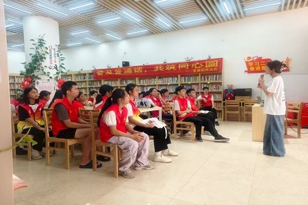 为响应国家推广普通话的号召,助力提升社区居民的语言文字应用能力,8月12日,星蘅玥突击队“三下乡”实践队走进当地社区图书馆,开展了一场生动有趣的推普课程,吸引了社区内不同年龄段的居民积极参与。