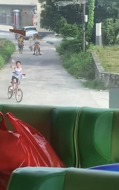 在乡村的公路上,大巴车缓缓驶离,透过后车窗能看到,几个小男孩骑着自行车在后面追赶,盯着越离越远的大巴,不时向车上的人挥手,更远处,又有六七名孩子骑着自行车追上来。这一幕发生于7月16日早晨的湛江平石村平石学校。车上坐着的是来自岭南师范学院“追希”党员社会实践队的大学生,也是在平石学校刚结束支教的“老师”,追车的是平石学校的学生。