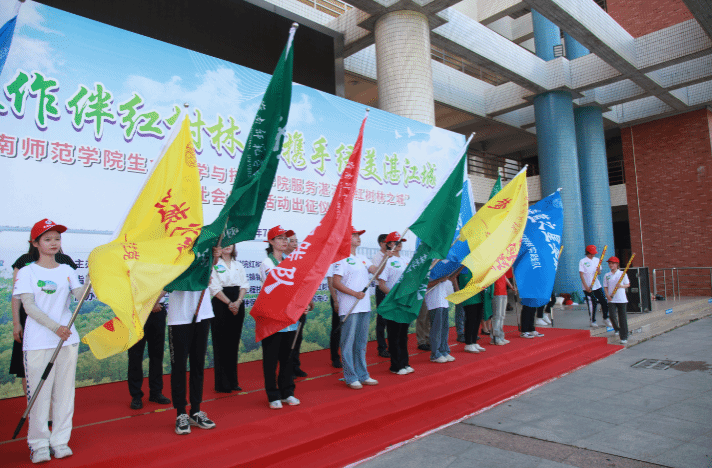 岭南师范学院生命科学与技术学院举行服务湛江“红树林之城”建设社会实践活动出征仪式。(摄影:骆丽华)