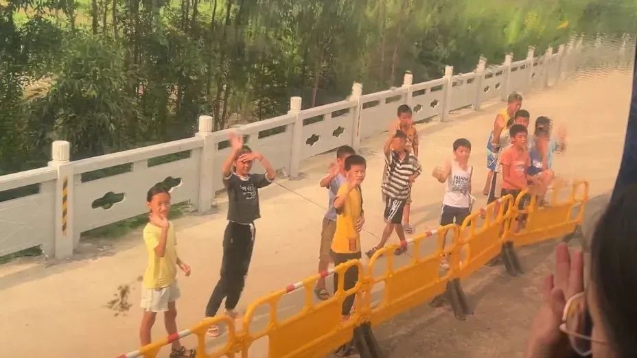 孩子们骑车送别的这一幕