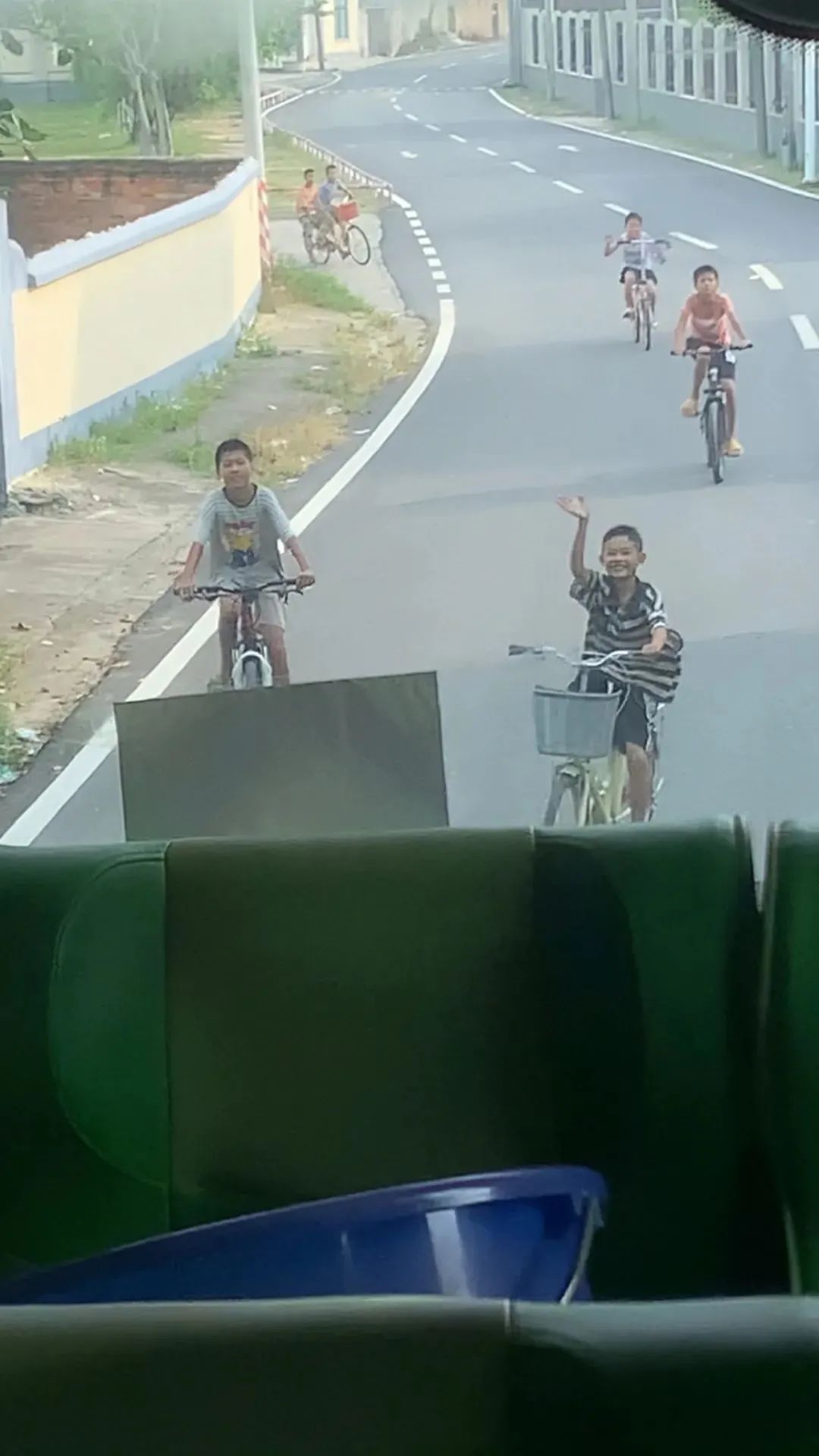 孩子们骑着单车一路追赶相送