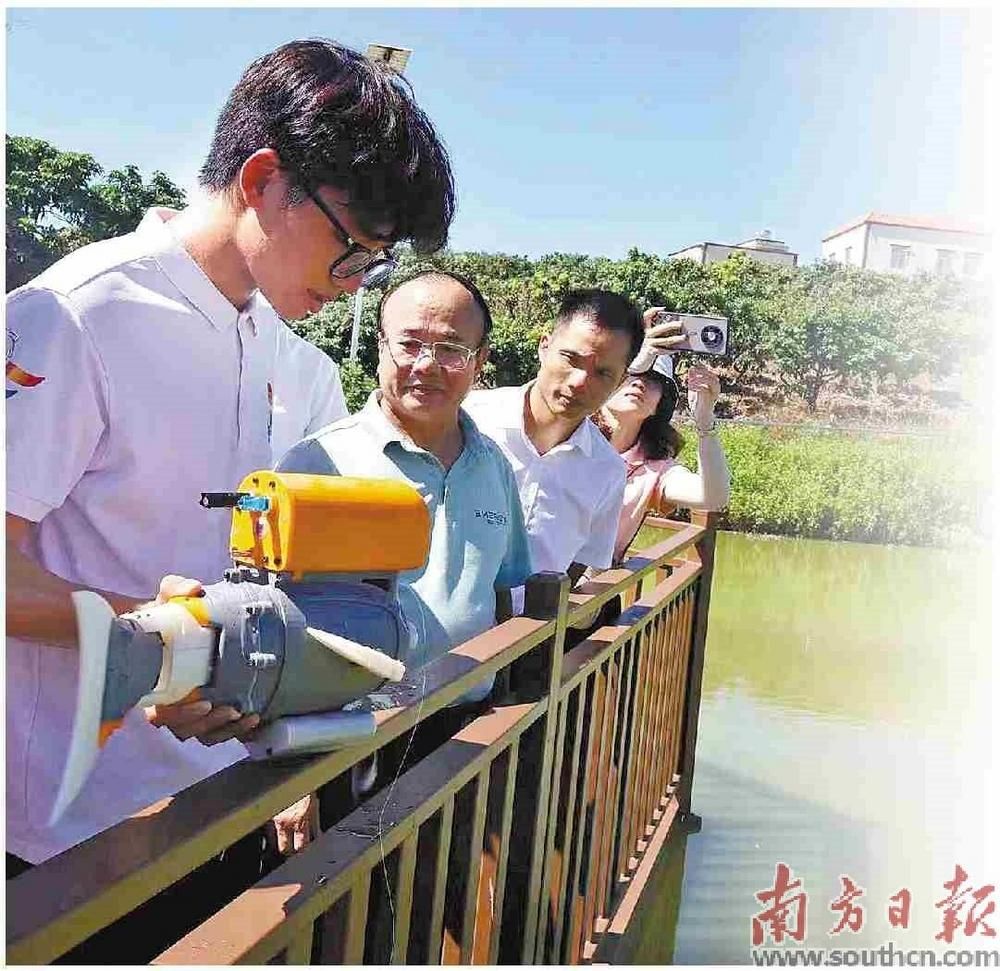 岭南师范学院“红星火”社会实践队将挑战杯省级一等奖作品智能仿生机器鱼落地廉江市良垌镇中塘村。团队以科技助力现代农业高质量发展为目标,运用该仿生机器鱼实时检测水质和水下摄像的功能,对水体DO、PH、温度等水质检测参数和鱼群进行实时检测,解决当地水质检测困难、检测不及时、准确性低的问题,助力智慧渔业构建,推动当地水产养殖业的发展。